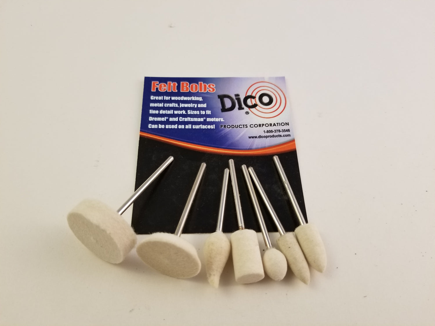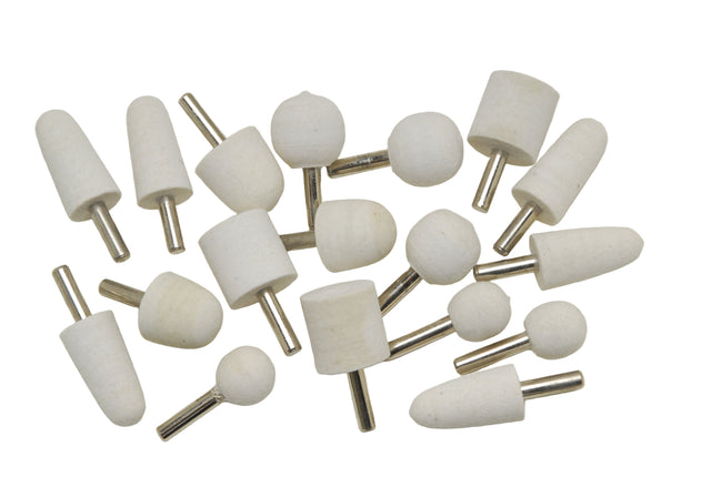 Hard to reach spots can be difficult to polish with full size buffing wheels. Felt bobs with buffing compounds will make those areas shine. Shapes include flame, ball, bullet & cylinder. Mandrels for collets of 1/8" and 3-3/32" fit mini-tools or 1/4" mandrels for your drill, too. Kits combine our most popular assorted shapes & sizes.