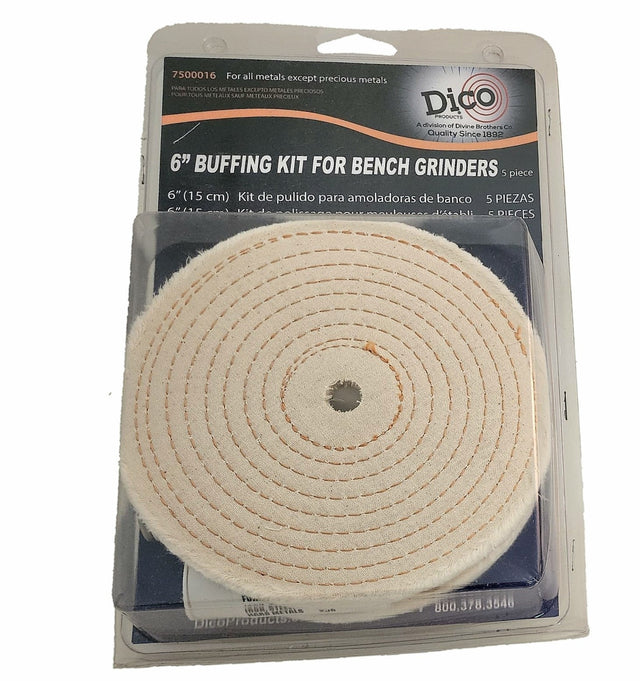 General purpose for bench grinders: Contains two 6" diameter buffs with three compounds for general purpose buffing of most metals except for gold & silver.
