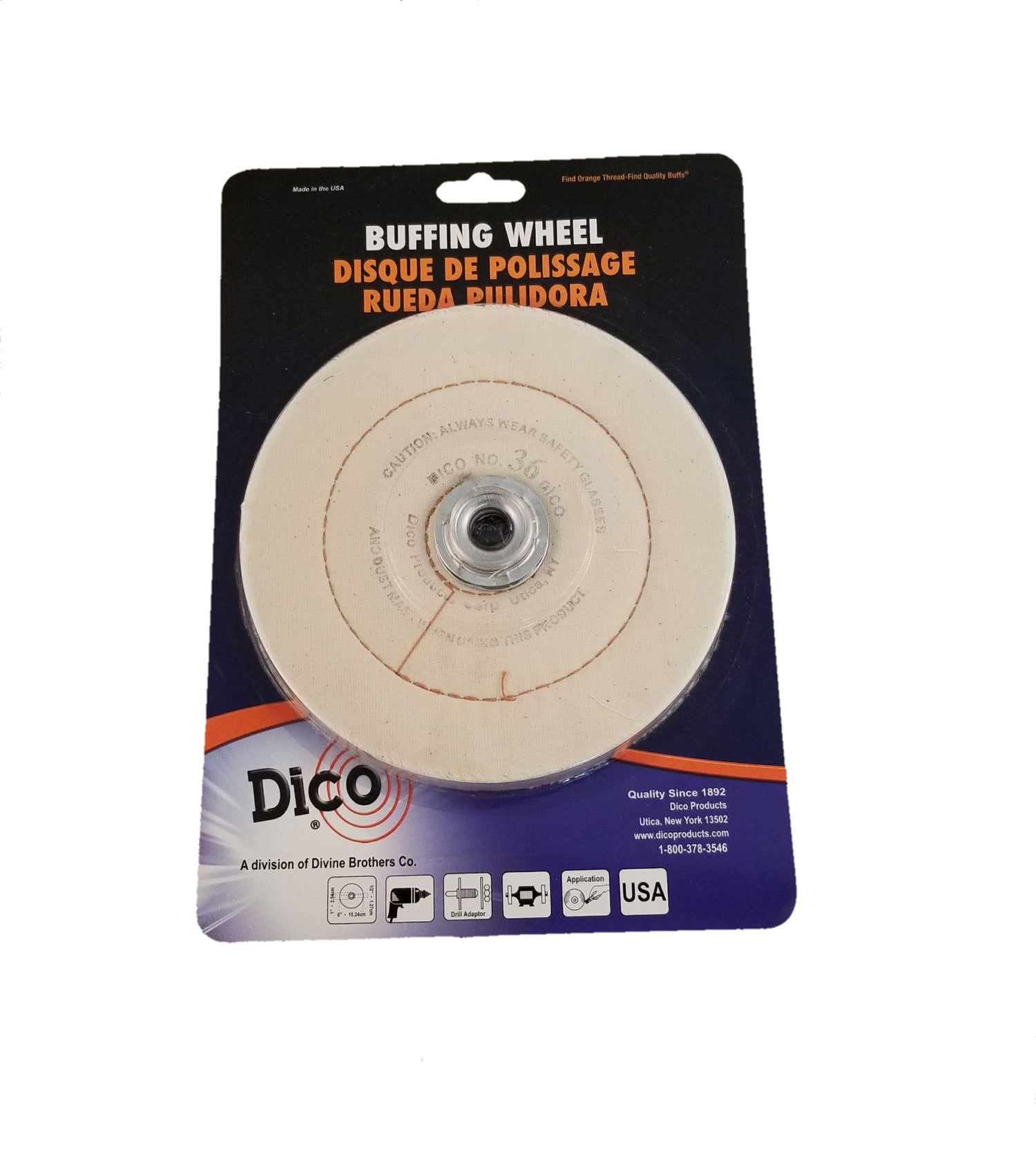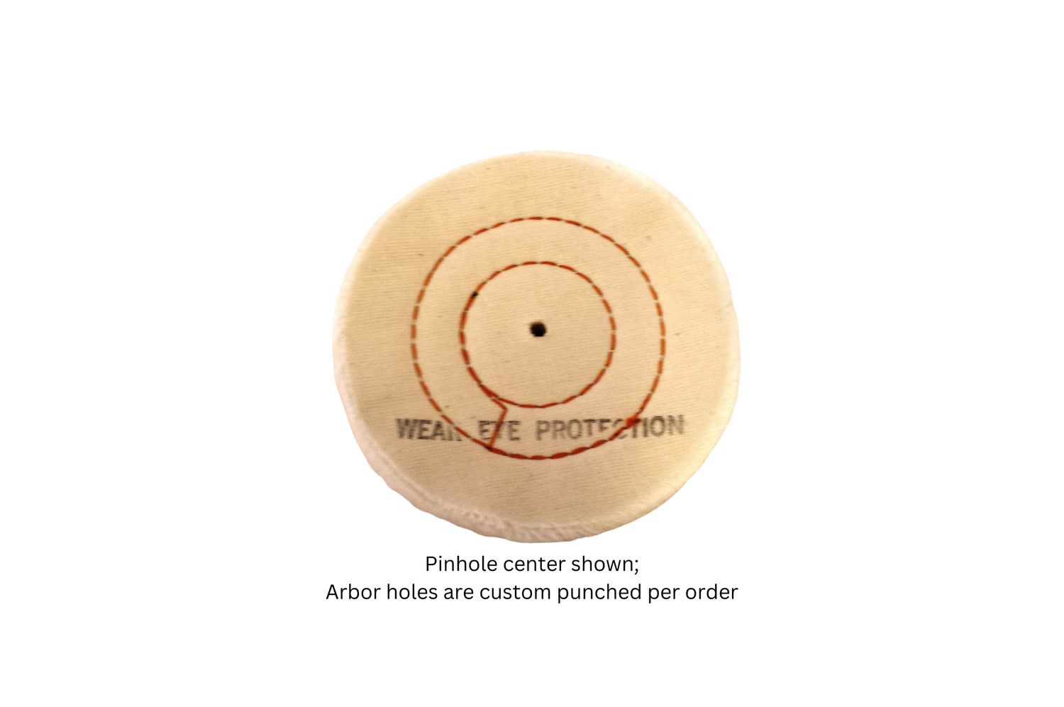 Bulk buffs: Custom punched arbor hole up to 1-1/14". - Sewn with Dico Orange thread. Remember when you: